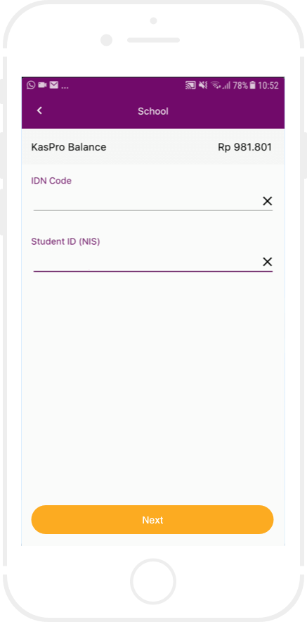 Pilih institusi pendidikan dari daftar yang disediakan, lalu masukan ID siswa. Jika anda ingin mendapat perlindungan Asuransi Jiwa Kredit, silahkan centang 'Daftarkan Asuransi Jiwa Kredit', kemudian klik Lanjut.