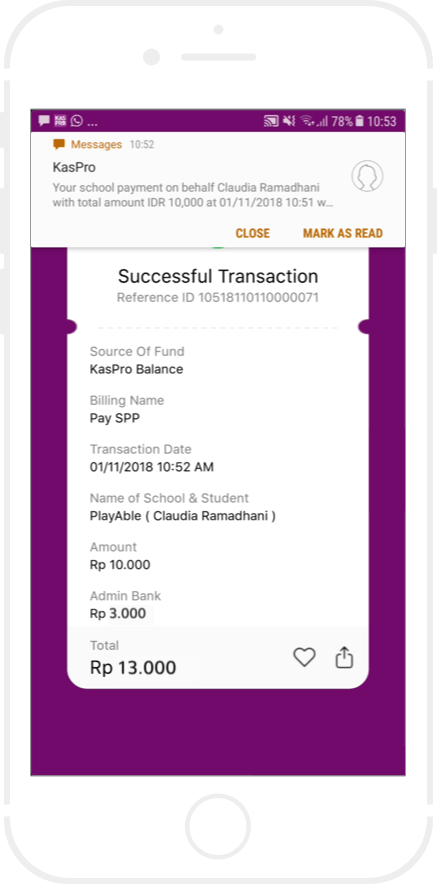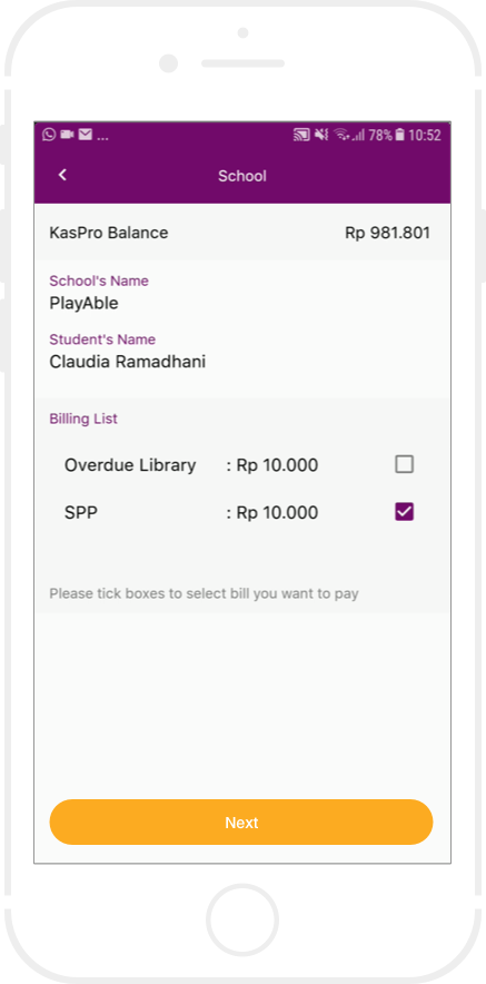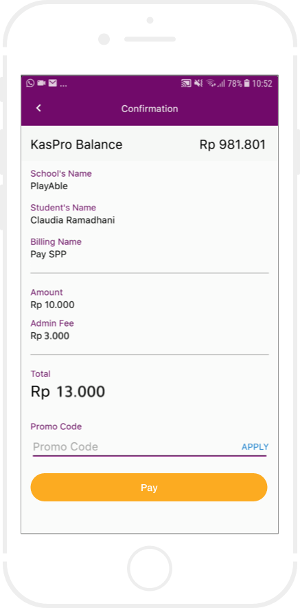 Pembayaran tagihan biaya pendidikan akan dilakukan maksimal 1x24 jam di hari kerja setelah anda melakukan konfirmasi.